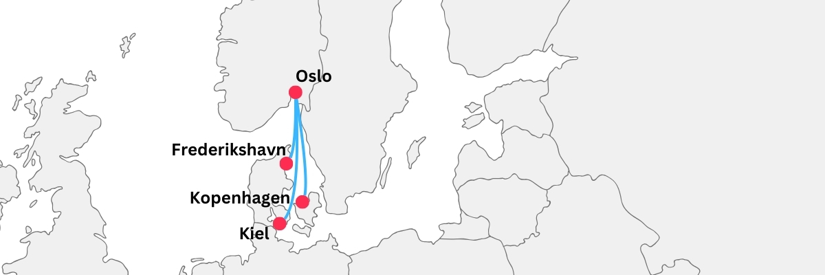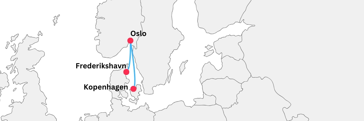 Wanneer je van Denemarken naar Noorwegen wilt reizen en wilt arriveren in Oslo, is dat mogelijk vanaf twee verschillende havens: Frederikshavn en Kopenhagen. De kortste route is vanaf Frederikshavn: deze duurt 10 uur.