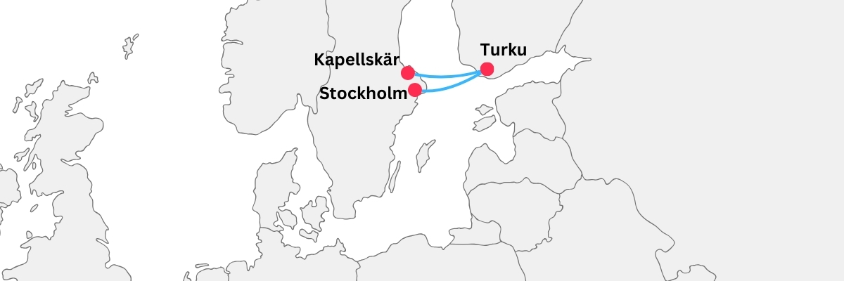 Het is alleen mogelijk om van Zweden naar Finland te reizen, als je aan wilt komen in de haven van Turku. De kortste route start in Kapellskär en duurt ongeveer 8.5 uur. Vanuit Stockholm duurt de overtocht 10.5 uur, maar deze is in veel gevallen wel een stuk goedkoper.